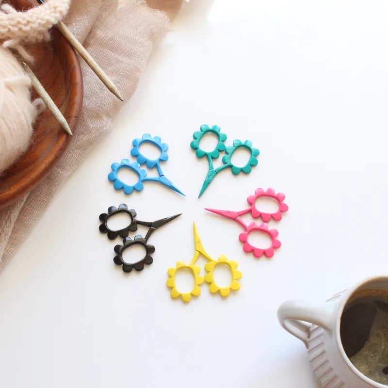 These little flower-shaped scissors add a bit of fun to your knitting or sewing projects. Sourced from Canada, these sharp scissors are a sturdy weight and cut yarn or thread with ease. A cute and functional little tool for everyday making.