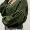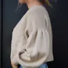 The Gather Sleeve Cardi is simple, yet structured with a touch of drama. This seamless cardigan features gathered sleeve details, neck shaping, drop shoulders, balloon sleeves and a relaxed fit.